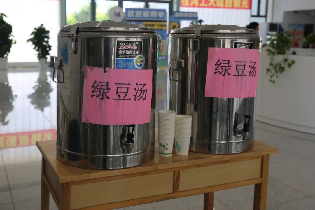 北辰校区体育馆向学生及家属免费敞开:全馆空调开放,设有舒适座椅,提供免费消暑绿豆汤、应急医药箱、充电宝租借点。