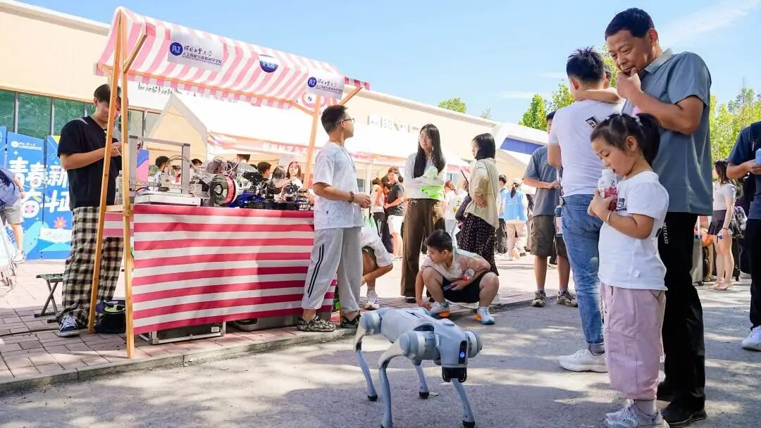 智能学子的仿真机器狗“萌翻全场” ,转圈、跳跃、耍酷动作一气呵成,直接把萌新的科技魂勾住了!